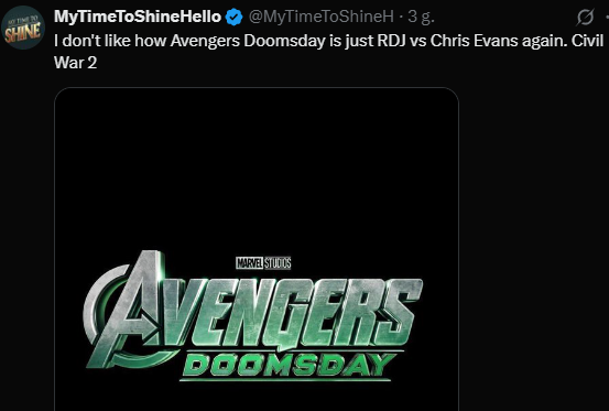 MyTimeToShineHello przychodzi z naprawdę ciekawą informacją, która mówi, że AVENGERS: DOOMSDAY będzie niemalże niczym CIVIL WAR 2, gdyż w filmie jednym z głównych wątków będzie pojedynek Dooma RDJ ze Steve’m Rogersem Chrisa Evansa, o czym w zasadzie informowałem już jakiś czas temu!