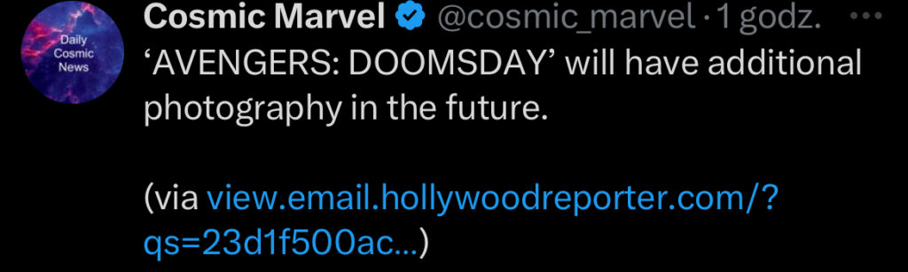 Zatem czekają nas dokrętki, jednak na obecną chwilę plan zdjęciowy AVENGERS: DOOMSDAY dobiegł końca. Podobno nagrano 2/3 filmu.