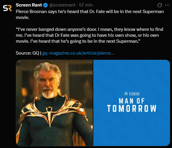 Pierce Brosnan zapowiada, że Doktor Fate ma dostać swój własny, solowy film, a jego postać również powróci prawdopodobnie w filmie MAN of TOMORROW! Aktor w tej roli zadebiutował w filmie BLACK ADAM i wywarł na fanach OGROMNE wrażenie.