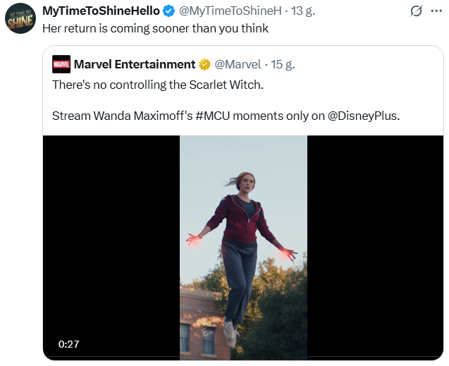 Mimo że Elizabeth Olsen na początku tego roku zapowiadała, że nie pojawi się w DOOMSDAY i SECRET WARS, powszechnie przyjmuje się, że powróci jako Wanda Maximoff/Scarlet Witch w co najmniej jednym z nadchodzących filmów MCU. Informator MTTSH twierdzi również, że Olsen powróci do MCU „szybciej, niż myślicie”.