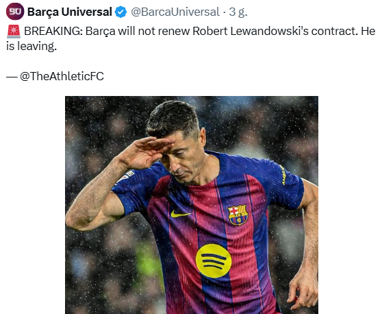 Według serwisu TheAthletic FC Barcelona nie ma w planach przedłużać umowy z Robertem Lewandowskim i ten po sezonie 2025/26 odejdzie z klubu!