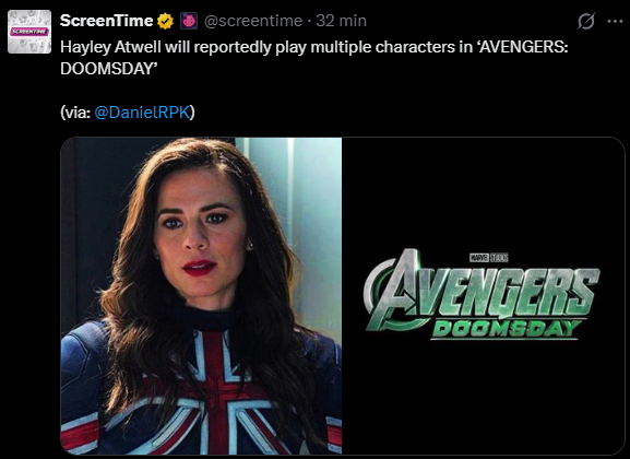 DanielRPK donosi, że Hayley Atwell nie powróci w AVENGERS: DOOMSDAY tylko do roli żony Steve’a, Peggy Carter. Aktorka ma odegrać w filmie kilka ról, a ja chyba wiem jaka będzie jedna z nich!