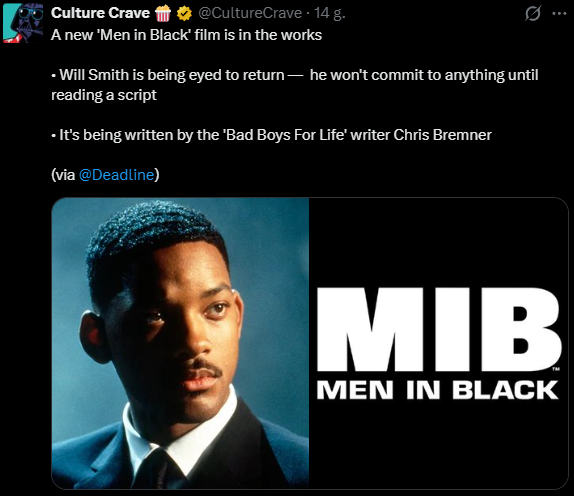 Według Deadline po udanym wznowieniu serii BAD BOYS firma Sony Pictures najwyraźniej jest gotowa odświeżyć swój czarny garnitur i okulary przeciwsłoneczne, ponieważ obecnie trwają prace nad nowym filmem MAN IN BLACK.
