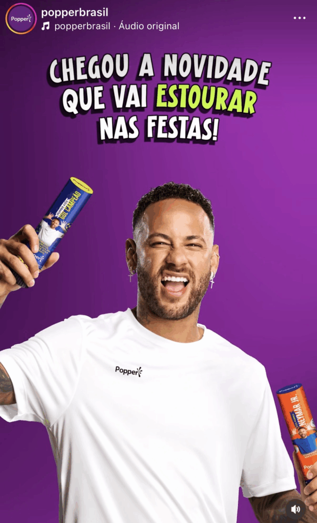 Neymar podpisuje umowę partnerską z Popperem na linię produktów imprezowych. Współpraca obejmuje farbowanie włosów (w 11 opcjach kolorystycznych) oraz wyrzutnie konfetti (w sześciu modelach skierowanych do różnych grup odbiorców i na różne okazje).