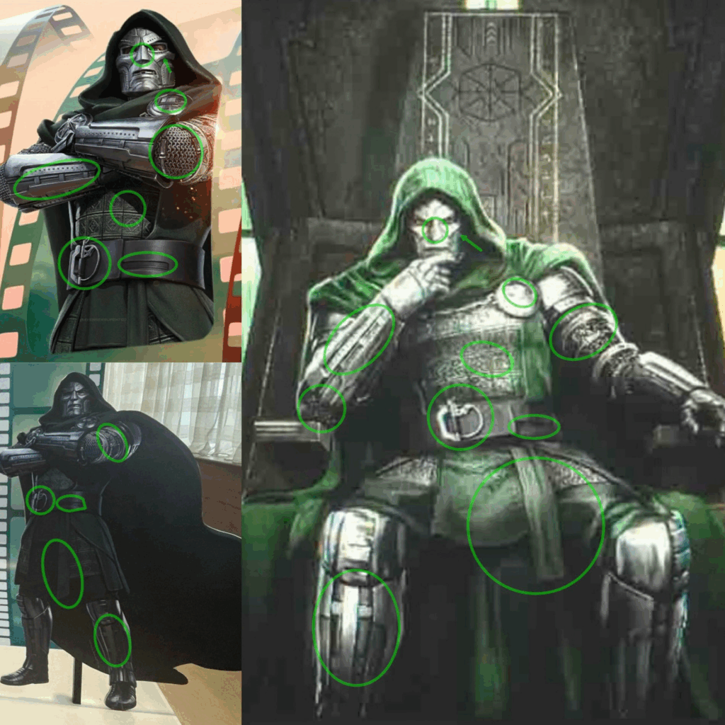 Wiele wskazuje na to, że mamy kolejny, oficjalny wgląd na wygląd Doctora Dooma Robera Downeya Jr. w AVENGERS: DOOMSDAY! Zdjęcie Victora na tronie pokrywa się z poprzednią oficjalną grafiką promocyjną! Na zielono macie zaznaczone szczegóły, które potwierdzają prawdziwość prawdopodobnie plakatu. To na 99.9% NIE Al..