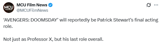 Według doniesień AVENGERS: DOOMSDAY będzie ostatnią rolą aktorską Patricka Stewarta. Nie tylko jako Profesor X, ale jego ostatnia rola w ogóle. Aktor zamierza przejść na zasłużoną emeryturę, no chyba, że zobaczymy go jeszcze w AVENGERS: SECRET WARS.