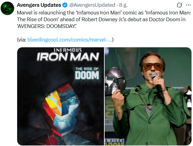 Robert Downey Jr. oficjalnie zagra Victora von Dooma, a nie wariant Tony’ego Starka w filmie AVENGERS: DOOMSDAY! Jest to potwierdzenie wielu poprzednich plotek za sprawą najnowszej zmiany w komiksie INFAMOUS IRON-MAN, który teraz zostaje wydany pod nazwą RISE OF DOOM!