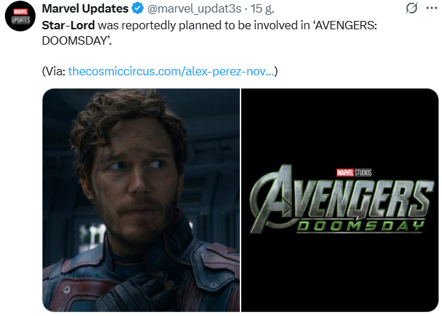 Według informacji od Alexa Pereza Star-Lord ma powrócić w filmie AVENGERS: DOOMSDAY, jednak ma on być jedynym ze Strażników, którzy mają mieć miejsce w najnowszej produkcji braci Russo.