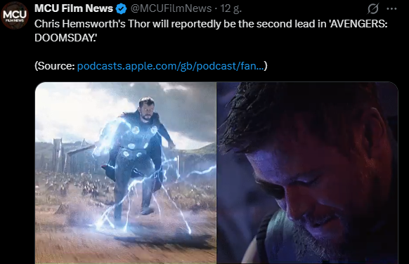 Thor Chrisa Hemswortha będzie 2 główną postacią w „AVENGERS: DOOMSDAY” zaraz po..