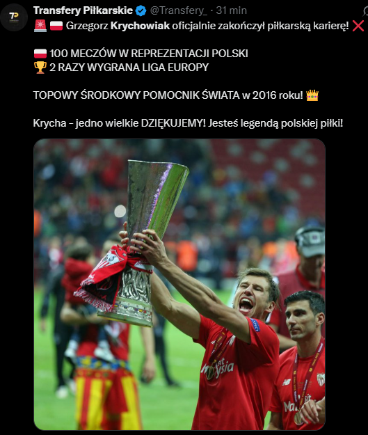 Krychowiaka można zdecydowanie nazwać jednym z najlepszych pomocnikiem świata w swoim prime, kiedy grał w Sevilli. Widocznie pomocnik nie dostał odpowiednich ofert, które zmusiłby go do kontynuowania kariery piłkarskiej.