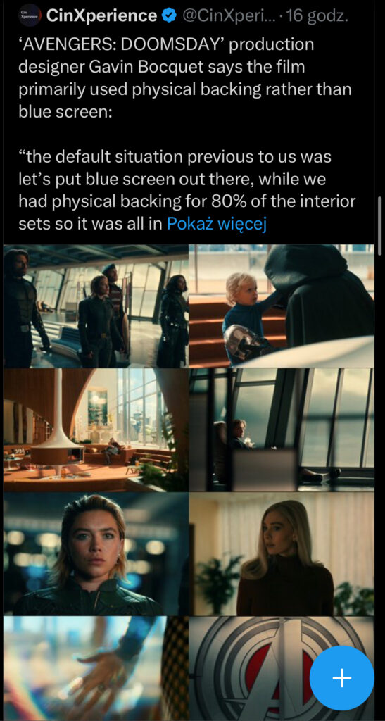 Gavin Bocquet, scenograf AVENGERS: DOOMSDAY, powiedział, że w filmie wykorzystano głównie fizyczne plany, a nie niebieski ekran, co na pewno jeszcze polepszy odbiór produkcji braci Russo!
