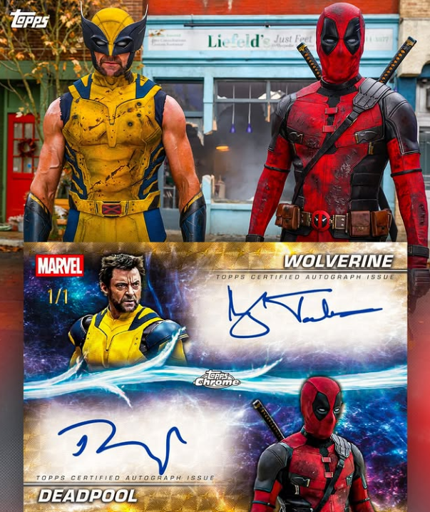 Wśród najbardziej pożądanych kart zdecydowanie jest podwójny autograf Hugh Jackmana i Ryana Reynoldsa z filmu DEADPOOL and WOLVERINE.