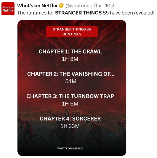 Ross Duffer potwierdził czas trwania pierwszych 4 odcinków wyczekiwanego, wielkiego finału serialu STRANGER THINGS! Sezon 5 zapowiada się znakomicie, a ponad godzinne odcinki to coś, na co fani czekali!